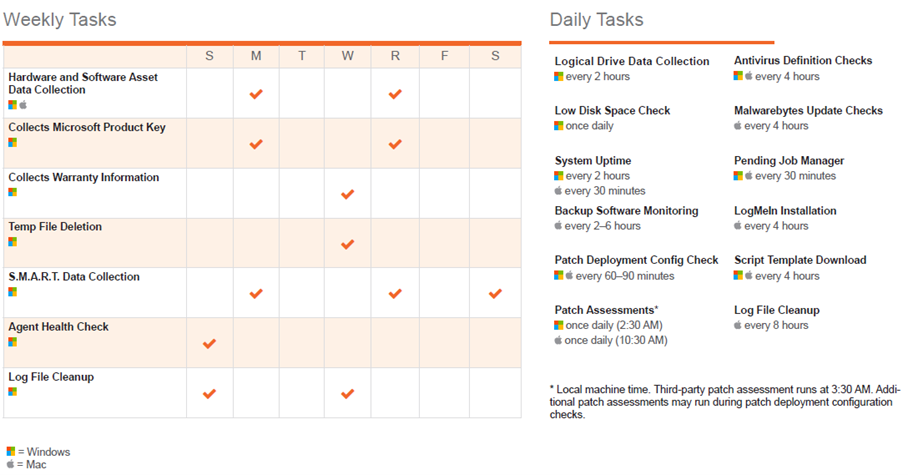 - Monitoring and management of patches and updates provided by Microsoft/Apple for security and compatibility.